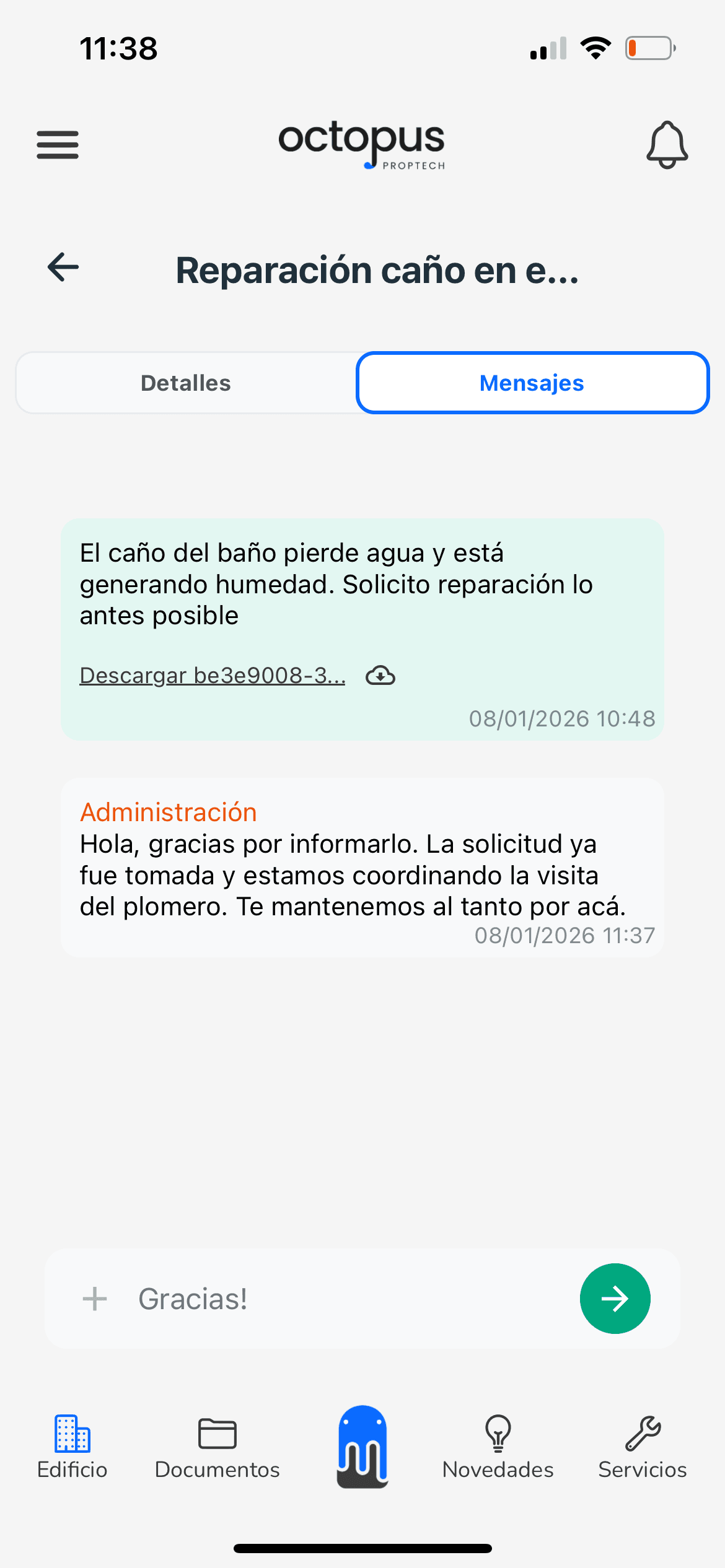 Cuando una solicitud está En proceso, el administrador puede dejarte mensajes.