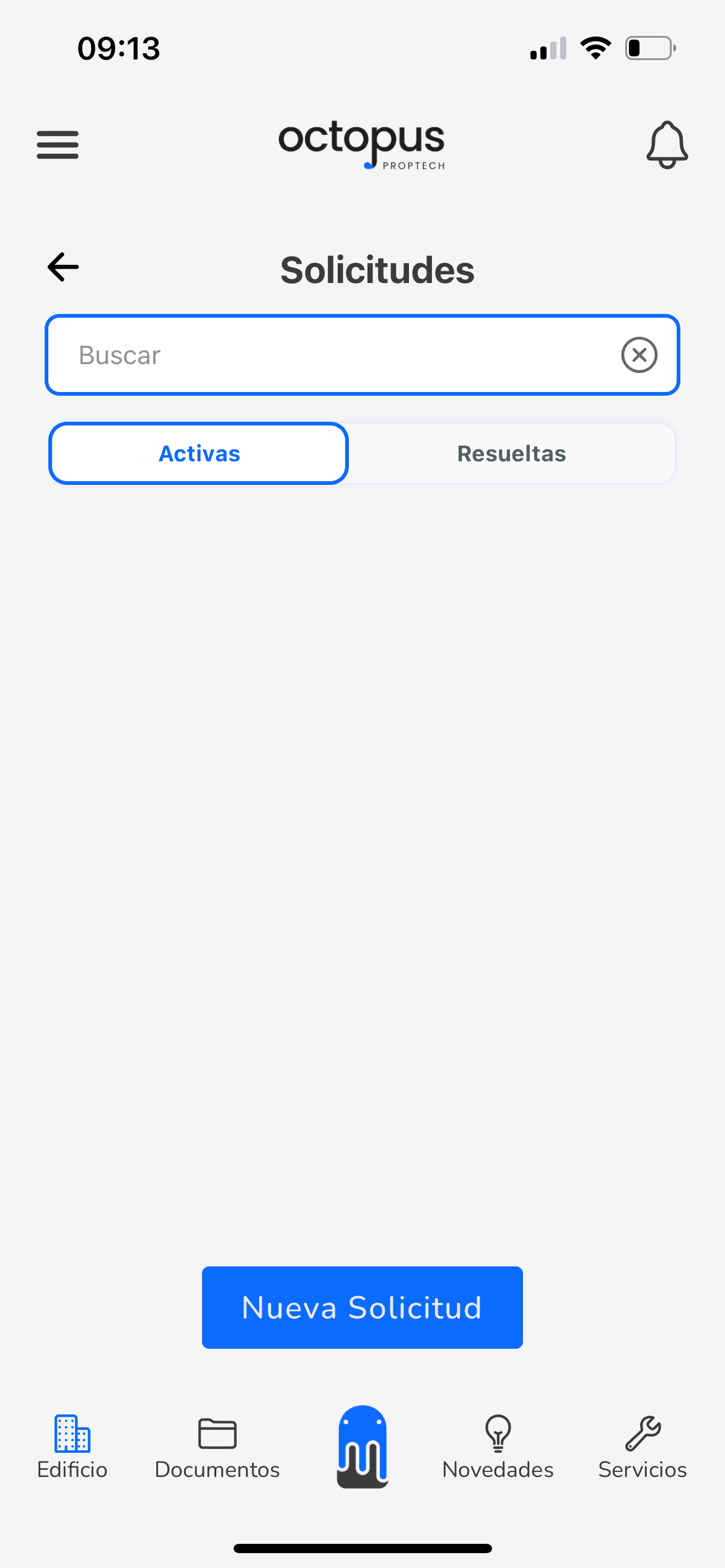 Dentro de la sección Solicitudes, tocá el botón Nueva solicitud.