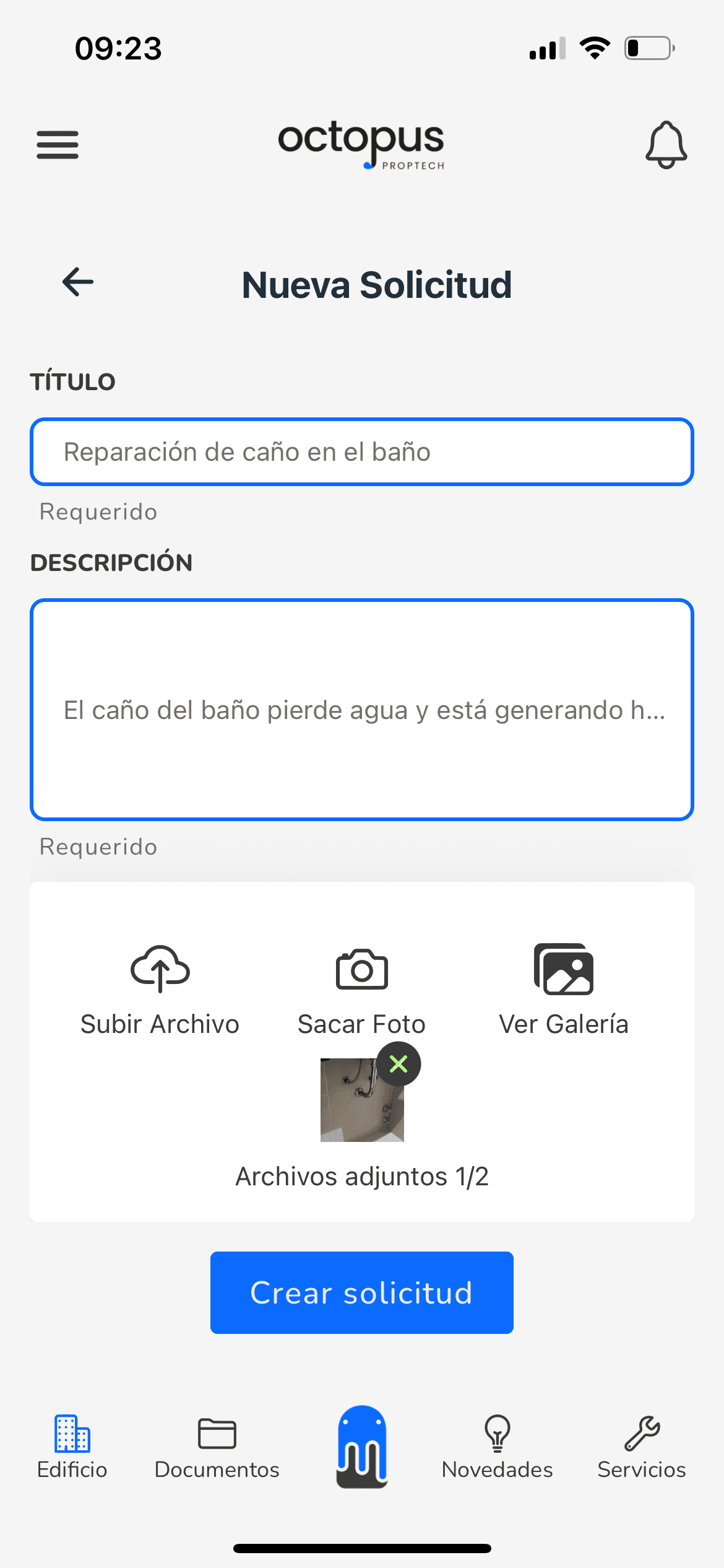 Cuando hayas completado toda la información, tocá Crear solicitud.