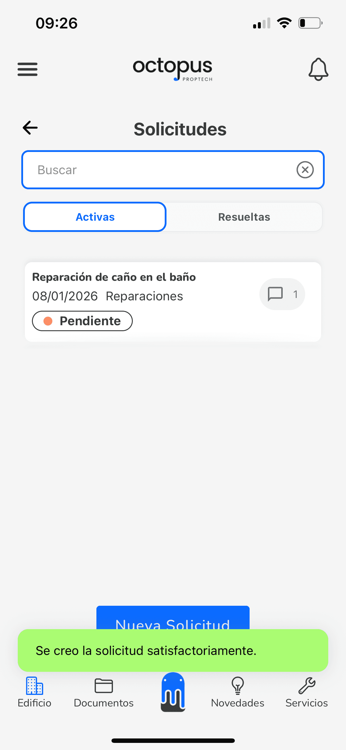 Ahí mismo vas a encontrar tus solicitudes activas y resueltas.