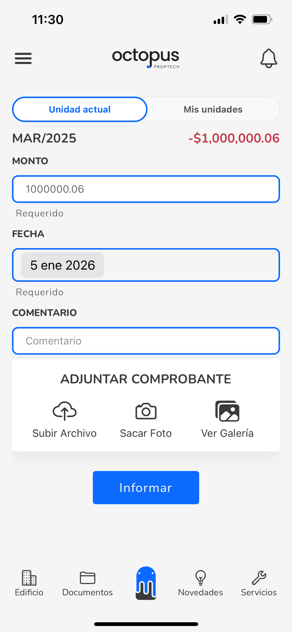 Ingresá el monto que pagaste y la fecha del pago.