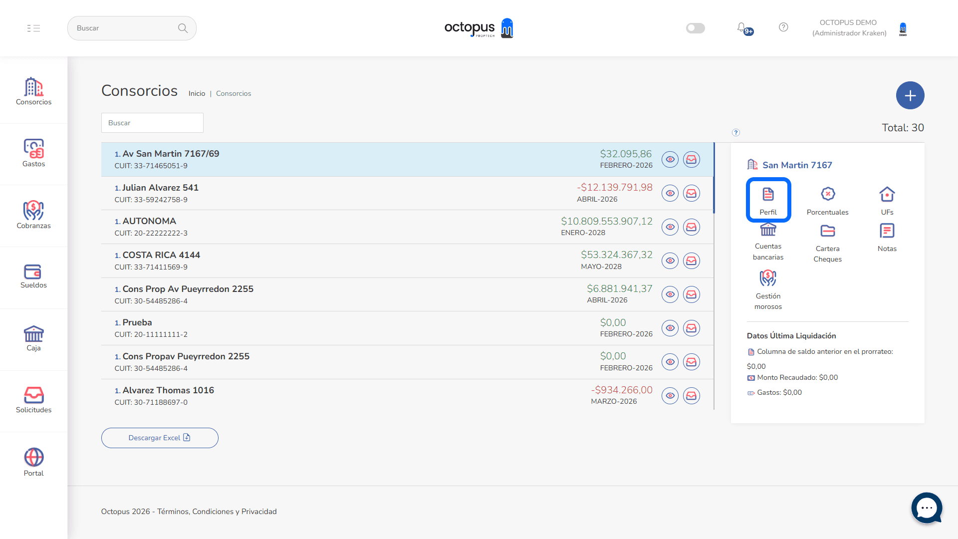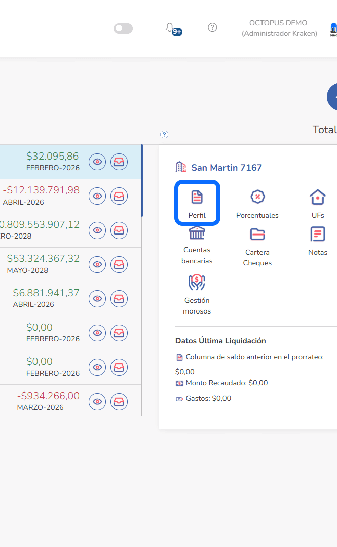 Clickeá en el edificio que quieras activar Pagos con QR, y en su panel de Configuración presioná Perfil.