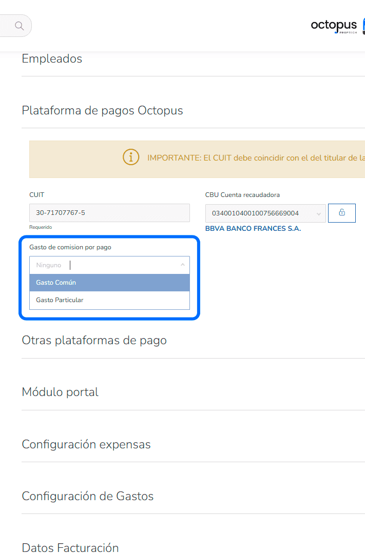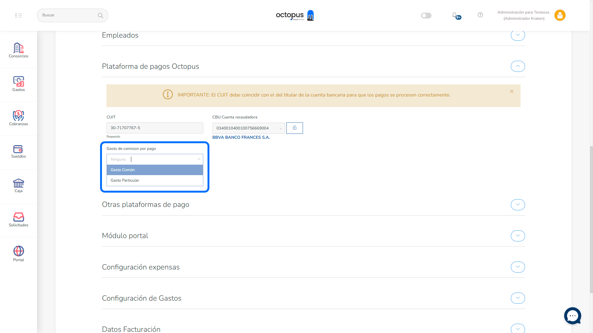 Gasto común: se registra automáticamente al consorcio, en el rubro y porcentual indicado.